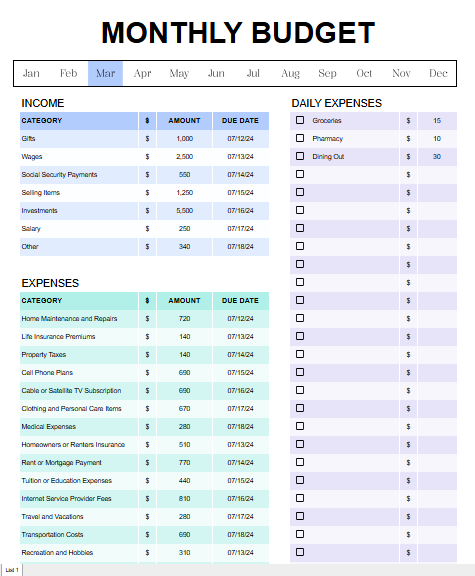 Colorful Monthly Budget